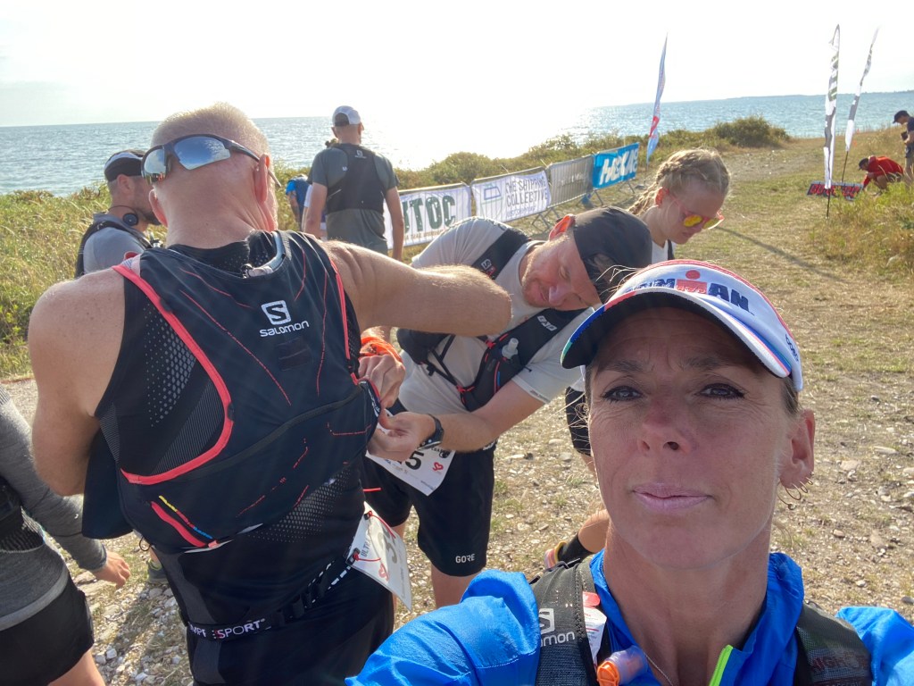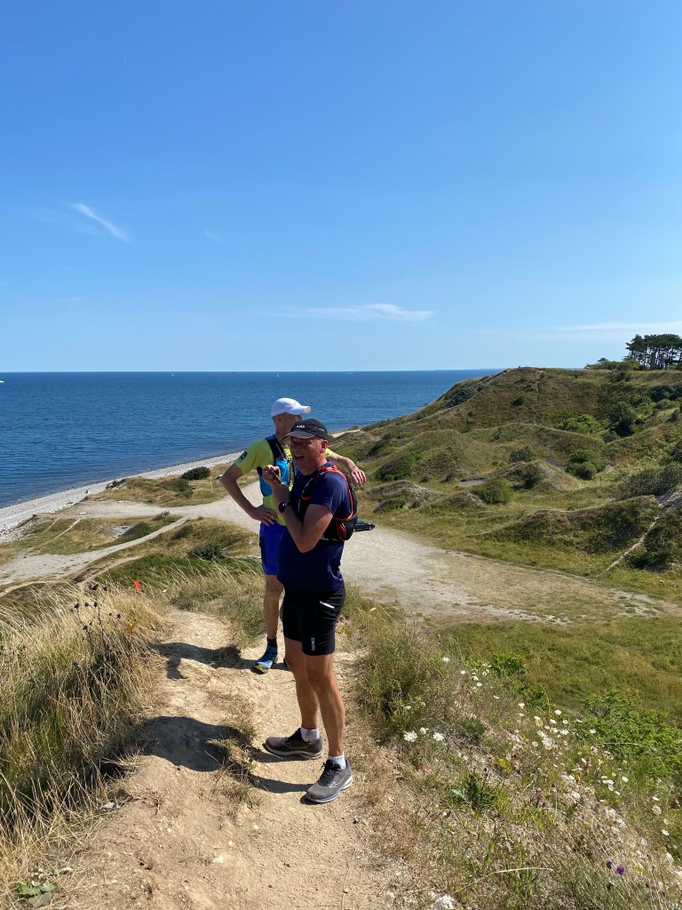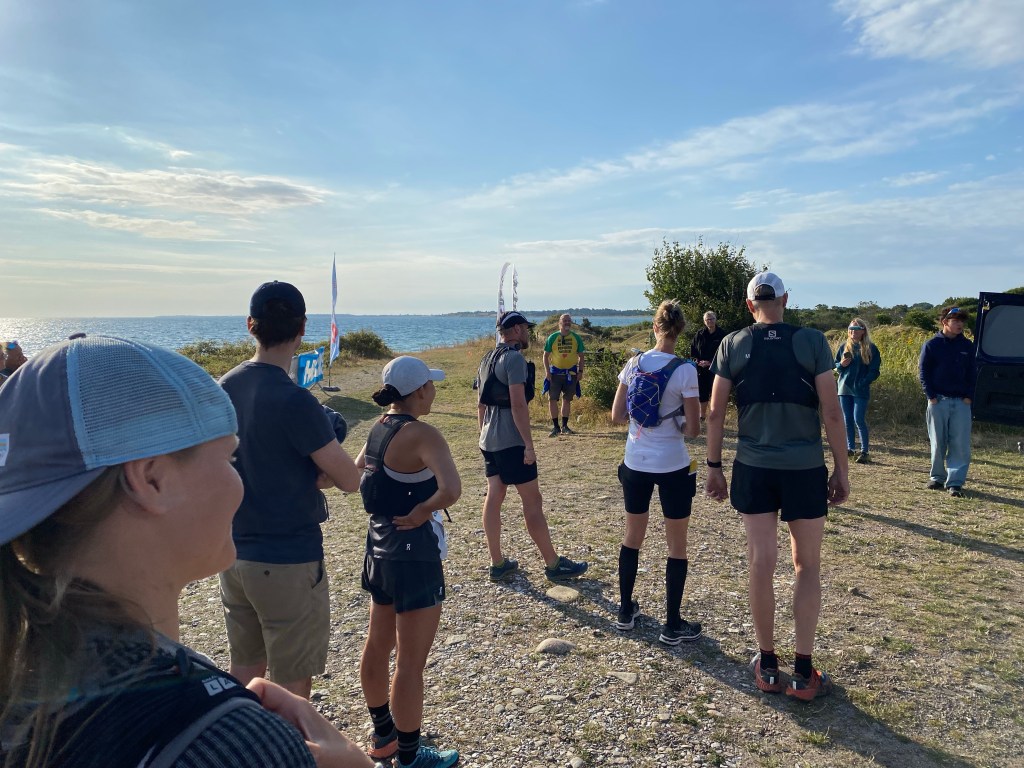 Vi var 41 løbere i bussen mod Odden, men kun 32 kom i mål. De første 9 udgik, så vidt jeg fik at vide på de første 10 km, som var præget af absurd mange rullesten langs kysten. Det var svært at opretholde reelt løb uden at anklerne vaklede mere end jeg havde trænet til. Efter de første 10 km tvivlede jeg faktisk også på egne evner ift hvor hårdt dagens løb ville blive… Det blev heldigvis lettere.