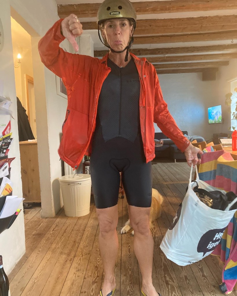 I dag skulle jeg have svømmet rundt om vores regeringsbygning for første gang. Og det væltede ned med vand fra oven hele natten og formiddagen. Men jeg daffede afsted på cyklen i min tridragt med forventning om en lækker svømmetur.