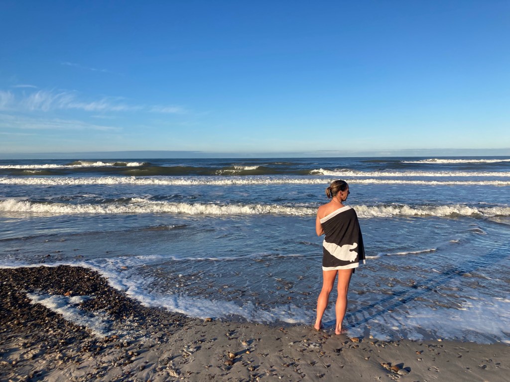 Onsdag vågnede vi op til en magisk stille morgen og jeg måtte i havet. Det var ikke engang koldt. Havdyp i Haurvig 🙂
