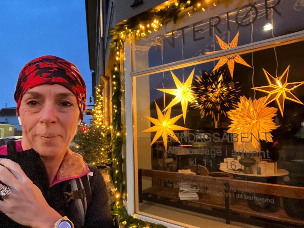 Torsdag d. 1. december: 20 km lågen blev løbet til og fra Carlsberg og forbi de fine vinduer på Valby Langgade.