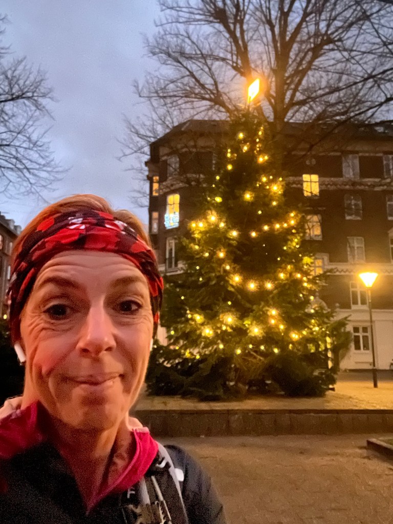 Fredag 2. December – 12 km fra Glostrup til Nørrebro og forbi juletræet på Balder plads. Julefrokost på KP efter arbejde så det skulle lige passes ind.