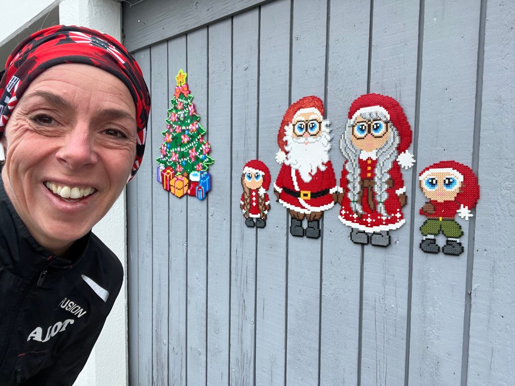 Lørdag 3. December: en let 5 km låge i kvarteret dagen efter julefrokost på arbejdet. Fandt fin perleplade juledekoration:-)