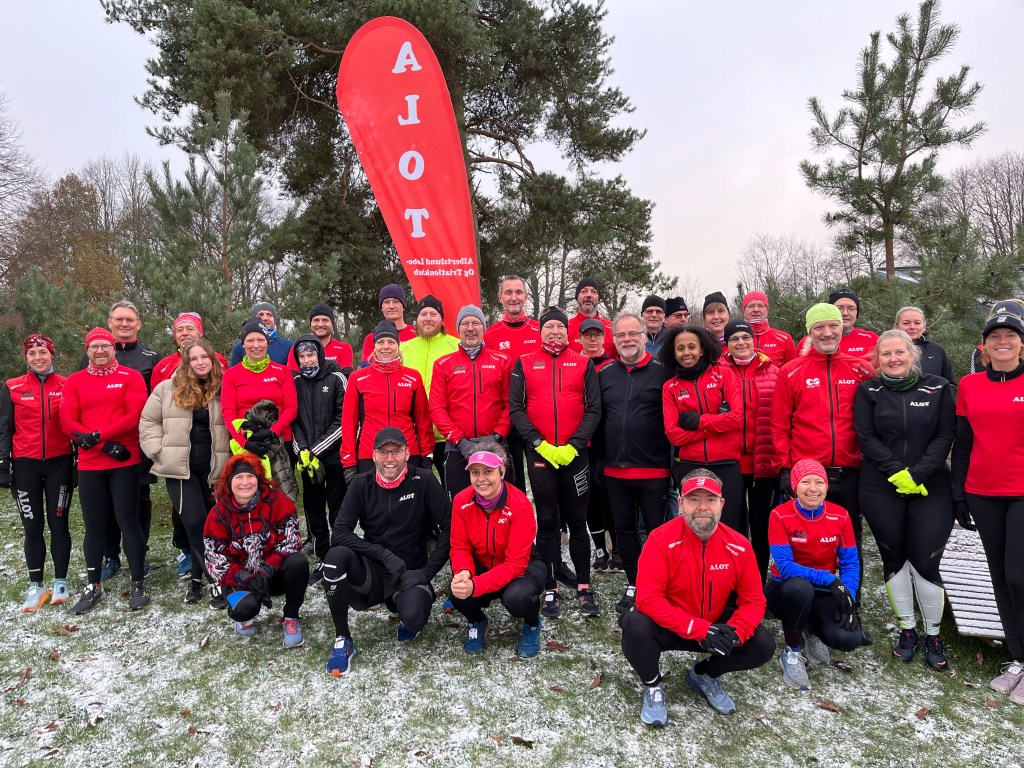 Søndag 11.12: De røde løbere fra ALOT dominerede i det fine hvide drys blandt Taastrups blå TIK løbere. Juleløbet på 10 km (48.48) og dernæst 11 km med Tanja igennem Vestegnens stisystemer hjemad. Dermed låge 21 åbnet (143/300)