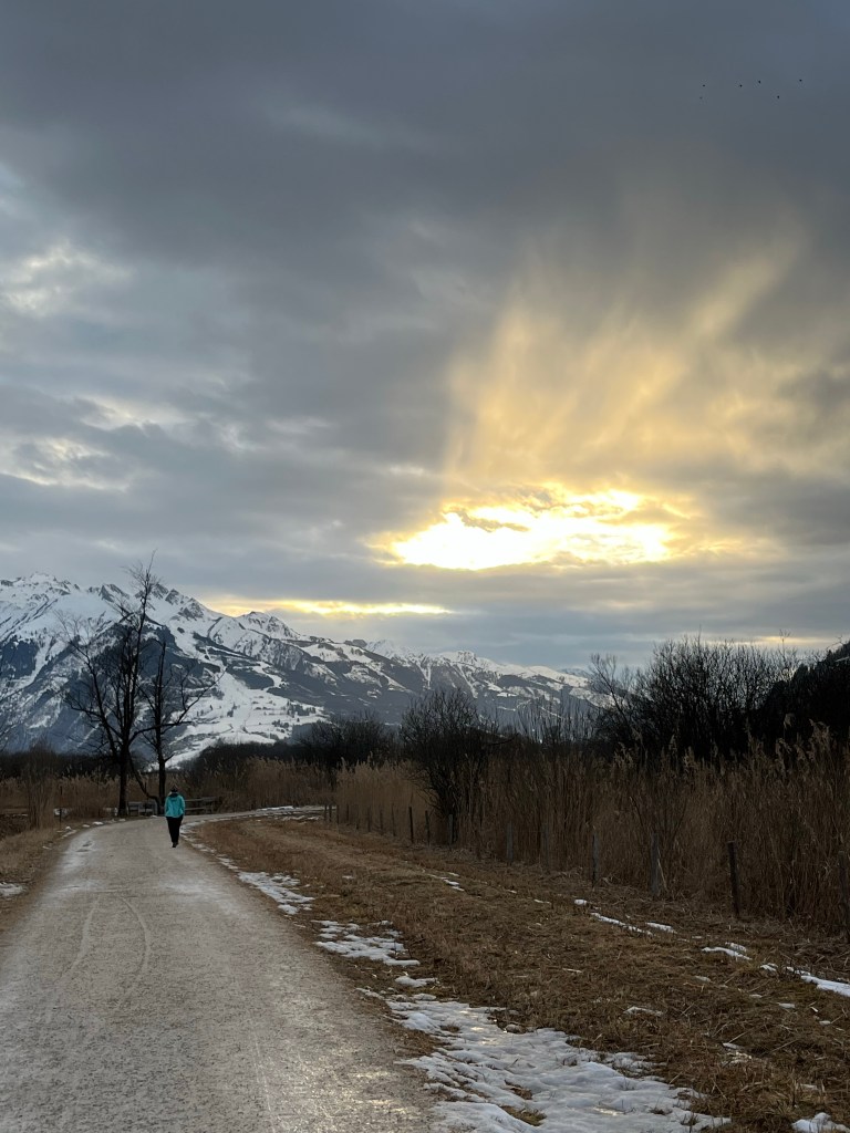 Jeg elsker min løbetur rundt om søen i Zell med ømme knæled efter dagens ca 40 km på ski. Jeg får mit eget lille space og det går ikke stærkt.