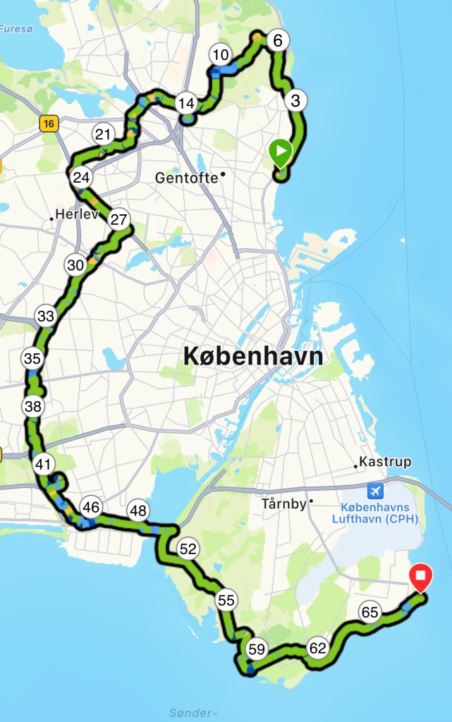 På Amager Fælled løb vi i lidt mere tavshed og da vi rundede 50 km, brød vi ud i fødselsdagssang for Jimmi som blev 50 år i dag 🙂