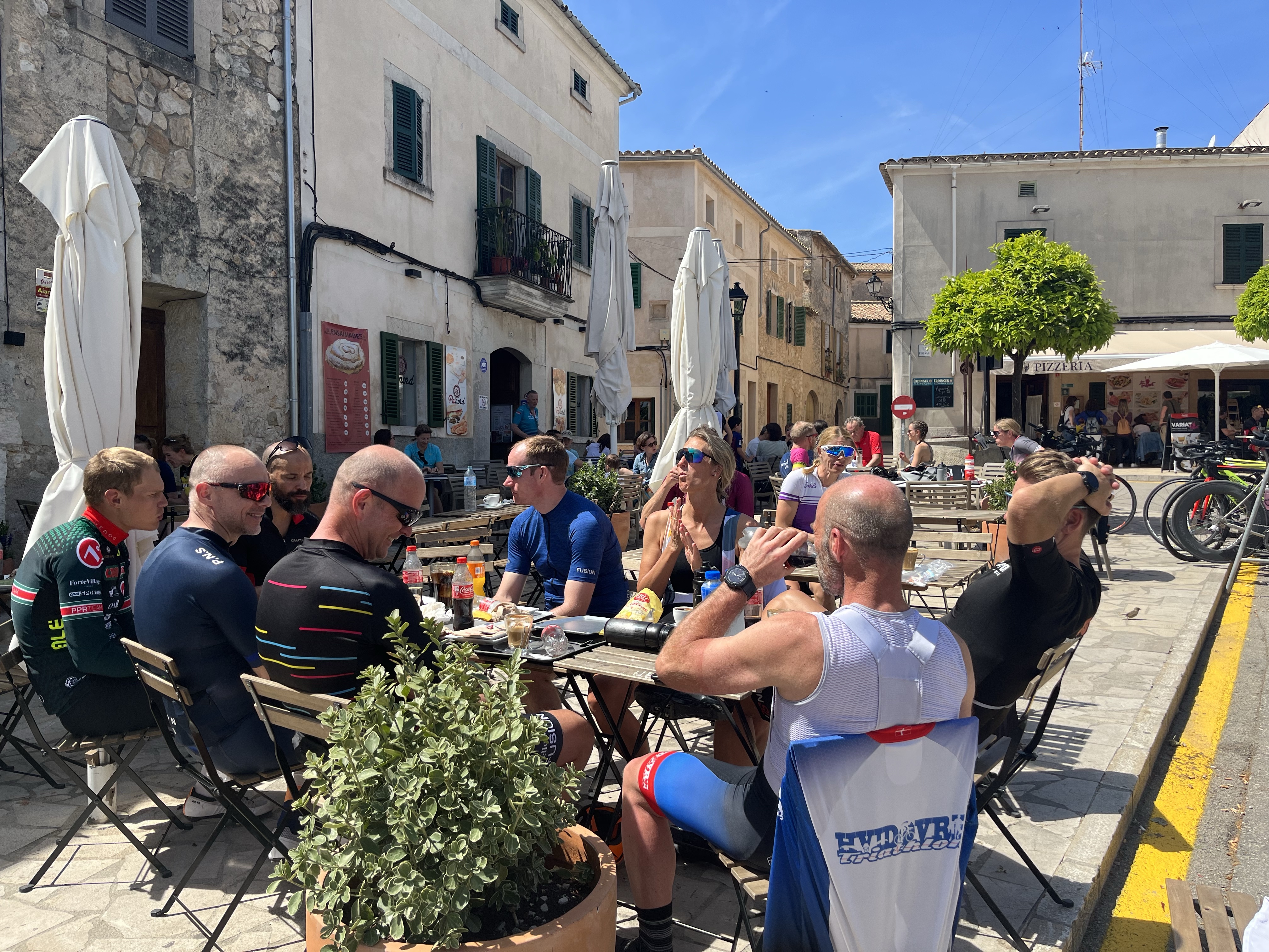 Efter ca 53 km holdt vi kaffestop på et lille torv i Sineu. Og så trillede vi hjemad.
