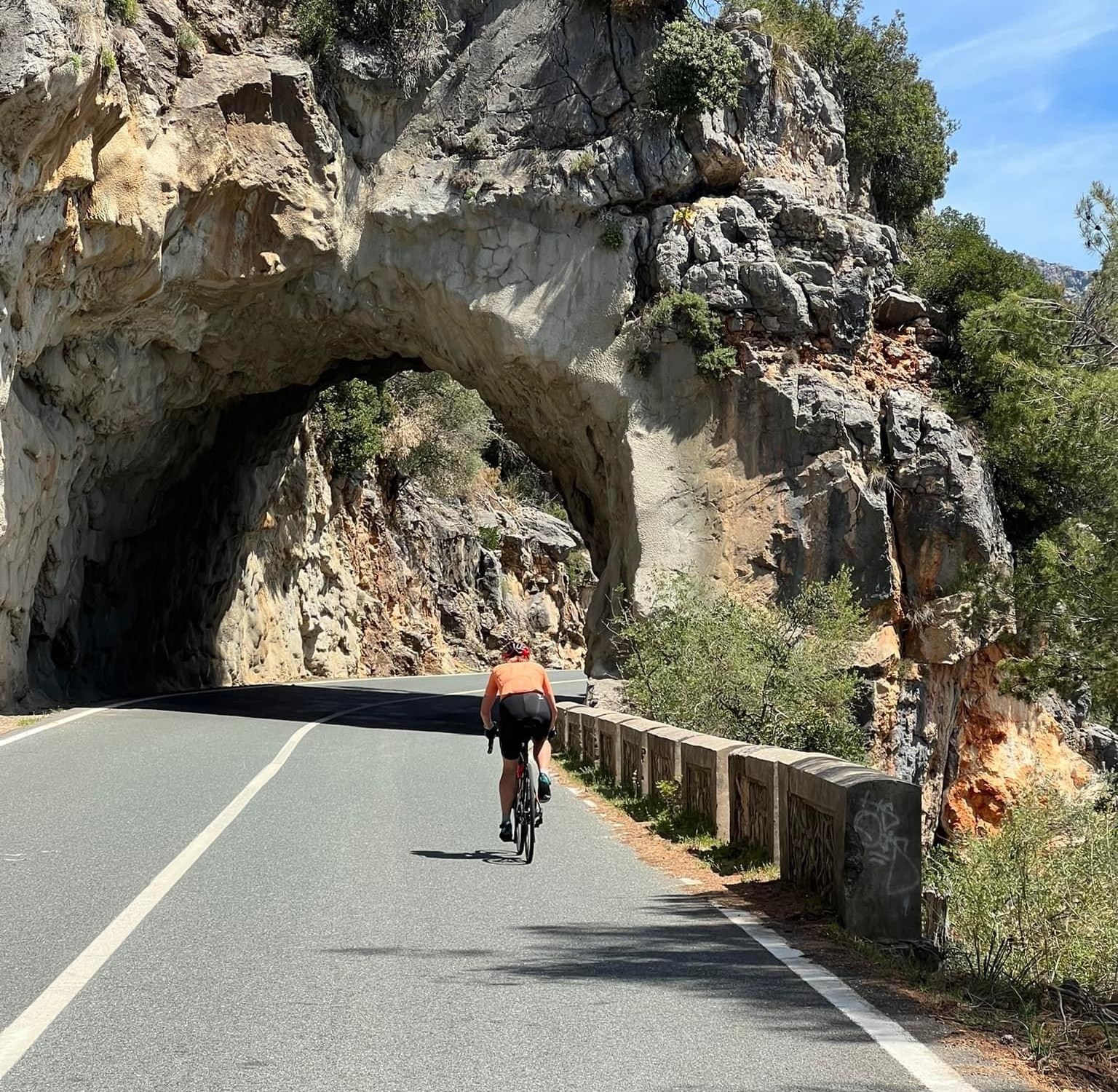 Der var tidlig afgang i morges kl.9 for det ville blive en lang dag i sadlen. Vi kørte først over stigningen ved Orient og den var rigtig flot med sine to skaldede tinder – en på hver side. Så havde vi en mindre stigning på virkelig elendig asfalt og med mange huller i vejen, før vi kom ned for foden af stigningen til Soller – min favorit opkørsel, en ca 5 km lang med 5.5% stigning. Jeg elsker den – den er så harmonisk og jævn og udsigten meget smuk. Jeg kom op på lige under 20 min og delte en cola med Lisbeth på toppen, mens vi fyldte mere vand i dunkene. Vi har 25 grader og det er varmt på cyklen.