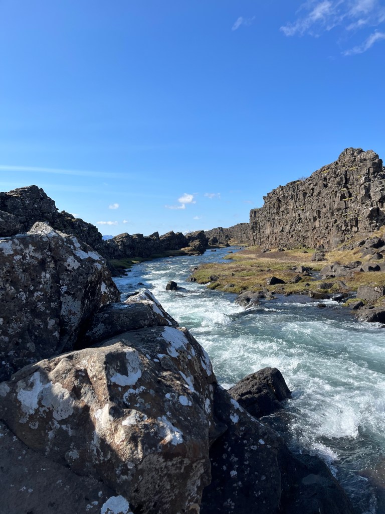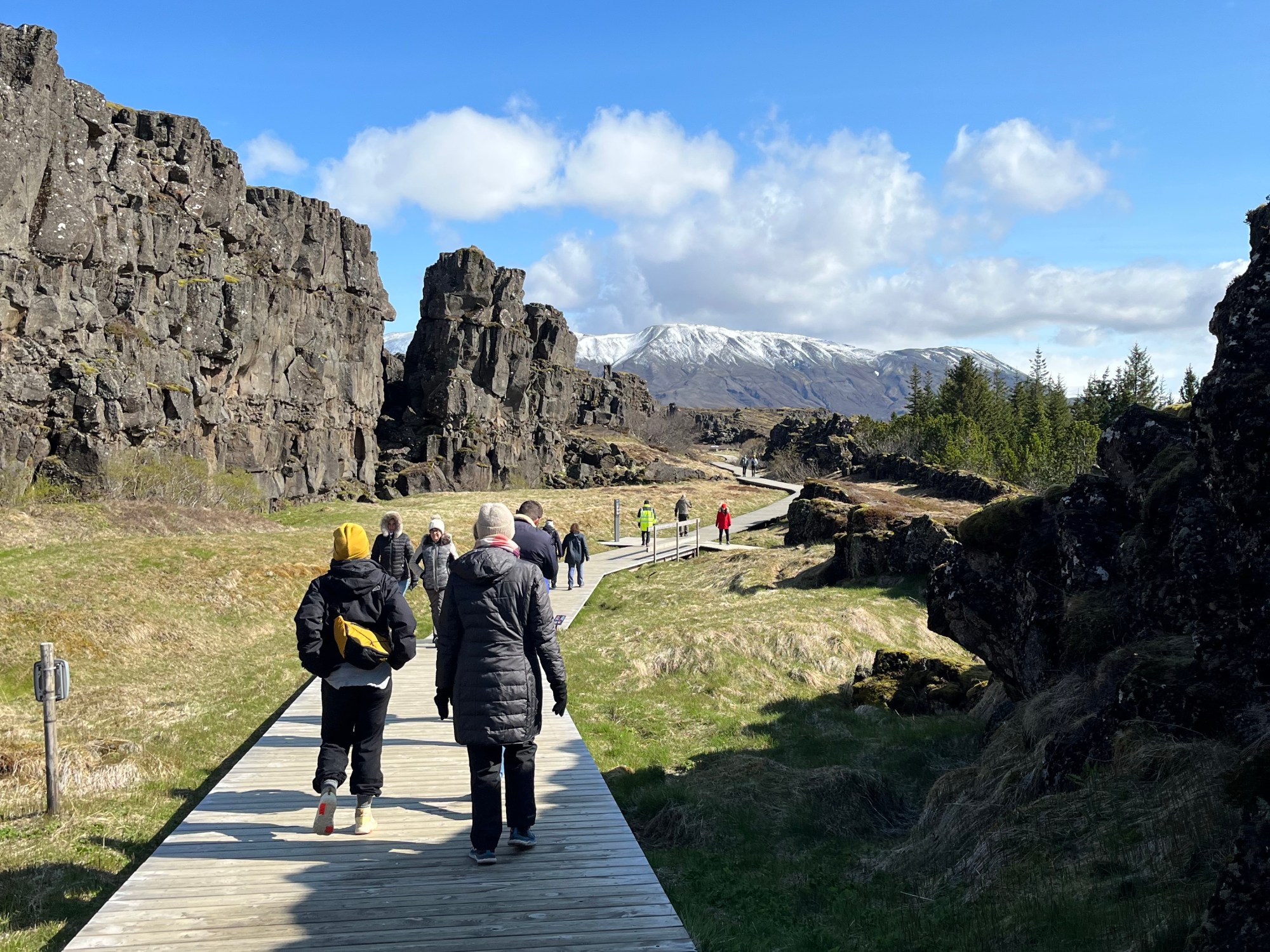 Vi satte kurs mod Pingvellir. Det sted hvor kontinentpladerne mødes og som har en afgørende betydning for Islands forfatning. Vi fandt en herlig – omend ret crowded gåtur langs kløften og “muren”. Så flot!