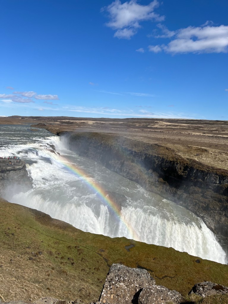 Vi spiste fish and chips inden vi kørte videre til Gullfoss et helt vildt power og vandholdigt vandfald “midt i ingenting”.