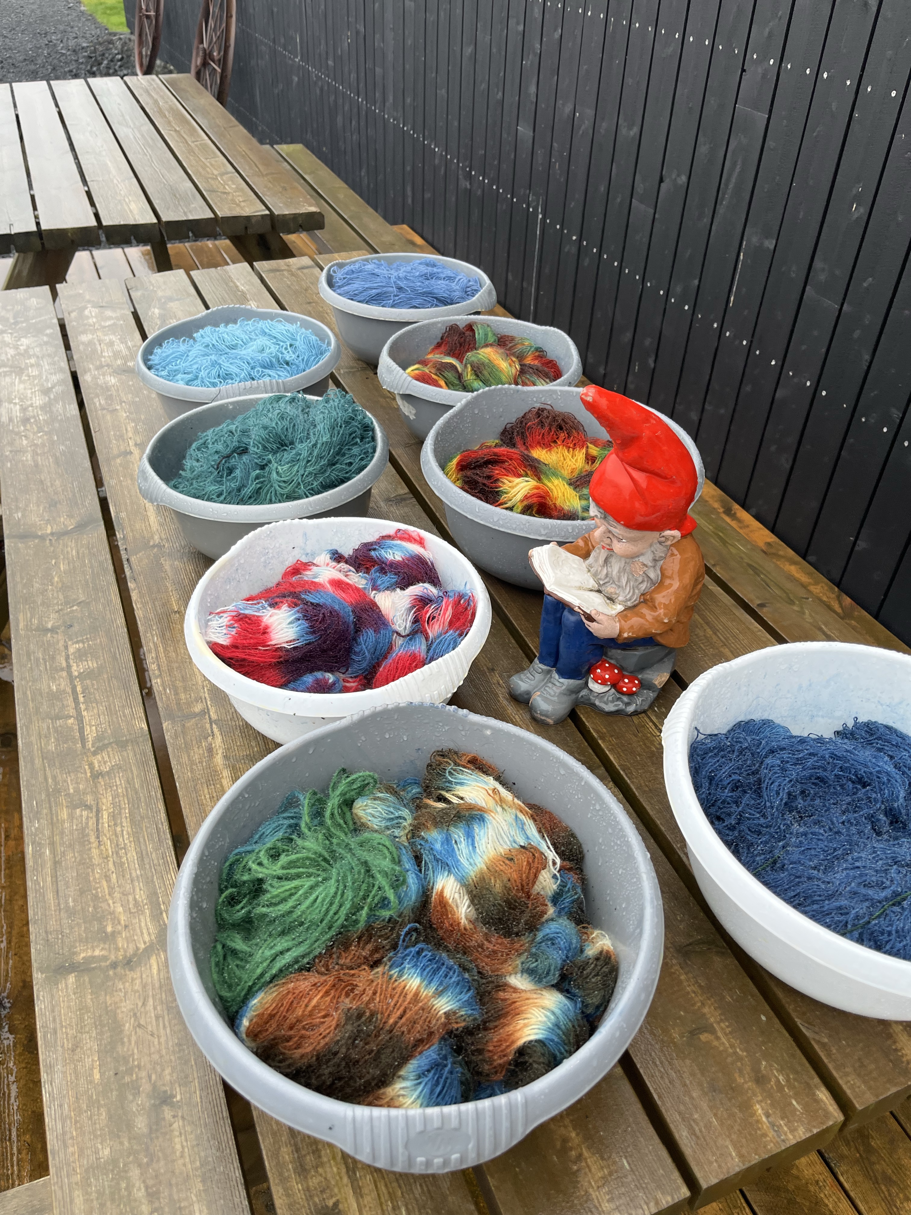 Det lykkedes! Det var fedt at se gryderne med garn der stod og kogte med naturlige ingredienser fra Island. Gudrun var meget fortællende og hyggelig med både kat og hund i værkstedet og kaffe på kanden. Jeg kom også til at købe er puslespil… med garn på🧶