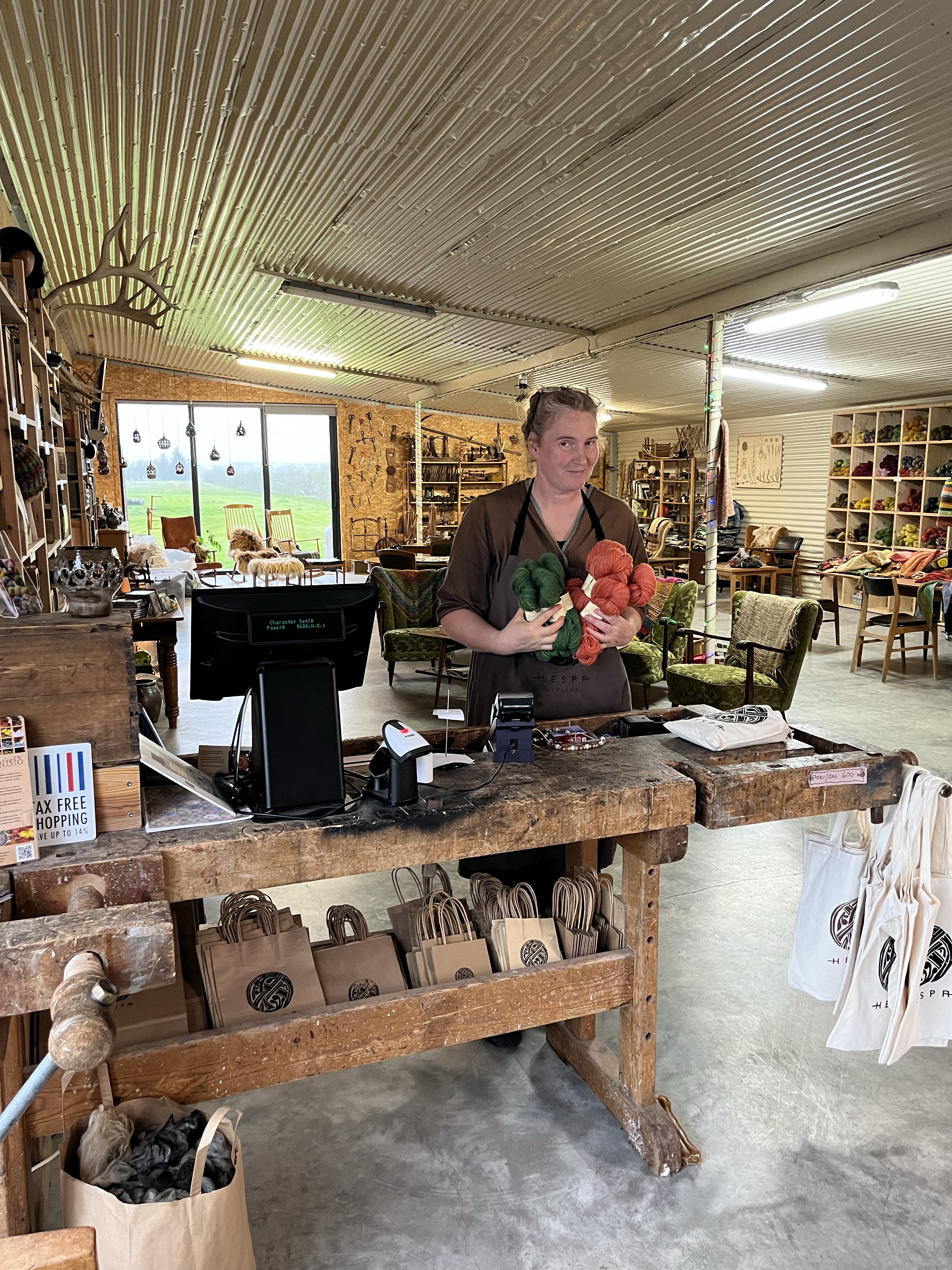 Jeg har set Gudrun i tv-programmet “Feldthaus og Bagger taber masken”, og jeg havde lidt drømt om at få noget særligt garn med hjem og strikke i.