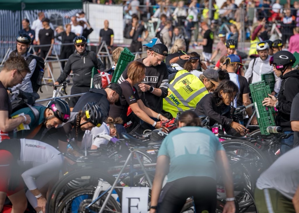 Starten blev udskudt 30 minutterr pga. at noget afspærring, som var blevet fjernet på cykelruten, så jeg nåede både at blive sulten og skulle tisse flere gange, mens vi ventede på starten. Jeg havde sagt hej til Gud og hver mand og nydt at hilse på nye og gamle tri-og løbebekendte.