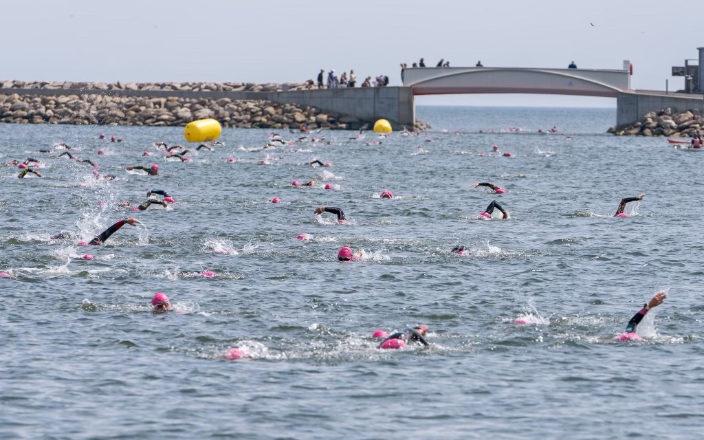 Jeg begik en rookie mistake – bortset fra, at jeg ikke er rookie længere! Jeg havde købt nye briller, som ikke var blevet afprøvet og det spillede slet ikke… Hele vejen fra stranden ud til vendebøjen blev jeg afbrudt måske 10 gange og trådte vande, svømmede bryst, lå på ryggen og forsøgte at få vandet ud af brillerne og få dem til at passe.