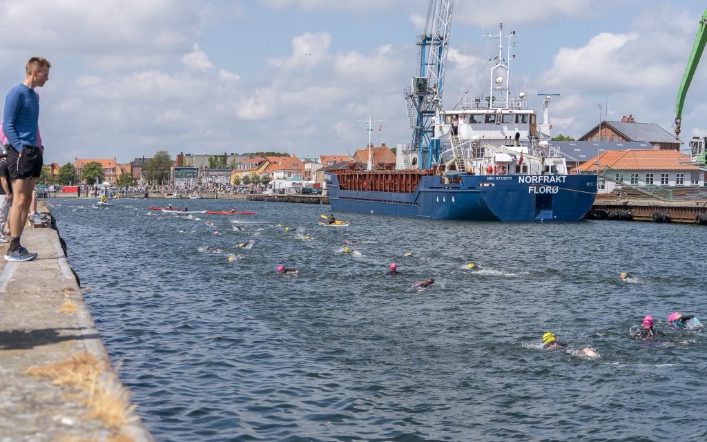 Da vi vender ved bøjen og skal svømme ind i havnen, får jeg gjort et eller andet som gør, at jeg kan “leve med” den vandmængde, der kommer ind, og finder et flow, men jeg har tabt mange minutter på frustration og irritation og havde ikke en god svøm den første halvdel.