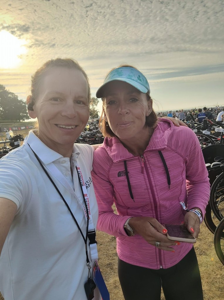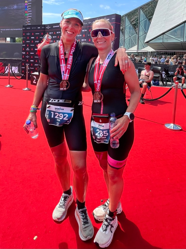 Oplevelser skal altså deles med nogen! Og Triathlon er sjovere når man følges med nogen. Heldigvis var der flere gode “nogen” fra tri-netværket, som også skulle race i dag, men jeg savnede selskab og samkørsel både i går og i dag, hvor jeg var alene i bilen ud og hjem- i går op og aflevere udstyr og i dag med race bobler i kroppen.