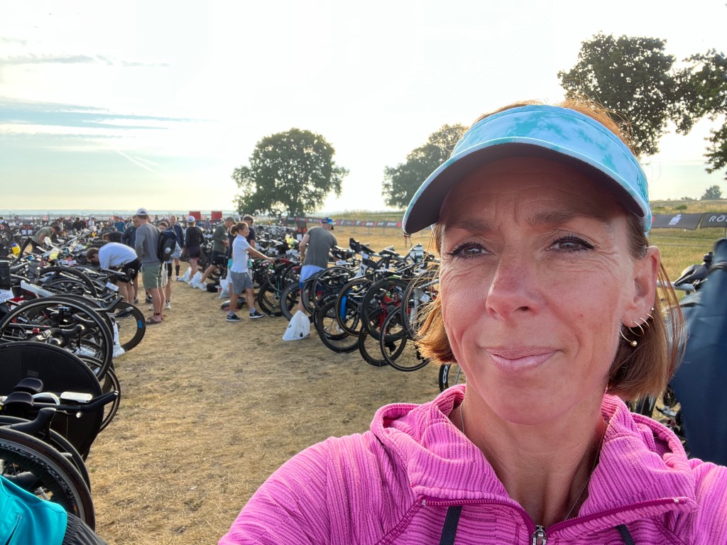 Uret ringede 4.45 og jeg var ude af hytten 5.30. Jeg var i skiftezonen ca 6.25 og stemningen er altså helt særlig til Ironman stævner. Der er bare skruet op for alting, musikken, speaket, deltagernes gear, alles… Jeg er fan af både lowkey tristævner og den ekstra pumpede stemning til de større, ligesom jeg kan lide cannonball Marathon, trail Marathon og store bymarathon.