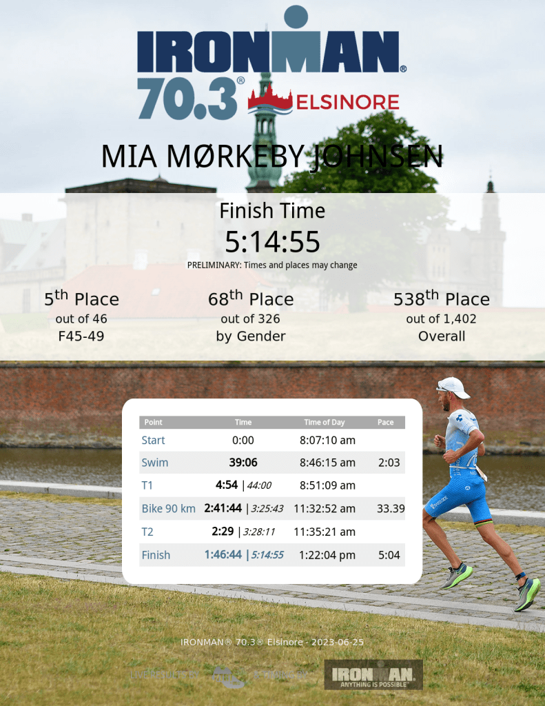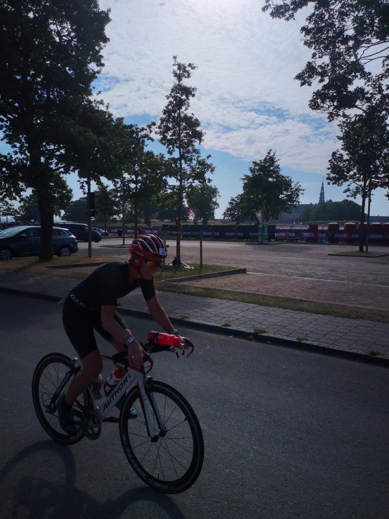 Cyklingen gik godt. Jeg kunne godt have trådt lidt mere, men ville gerne spare kræfterne til løb, ovenpå sidste uges halve i Køge. Vidste den ville blive varm! Der duftede af hyld og grankogler, og solskin på hud på hele ruten. Så lækkert! Jeg holdt et snit lige over 33 km/t.