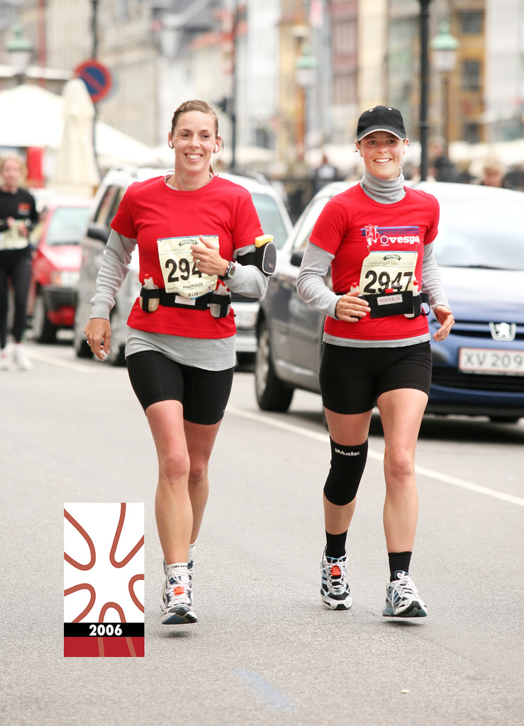 På marathondagen ca 7 mdr. efter jeg havde født, husker jeg mest af alt af at det haglede meget på Langelinje og at min søs og jeg fulgtes hele vejen rundt. Vi havde mindre kriser på skift, men en god oplevelse. Så var det flueben sat.