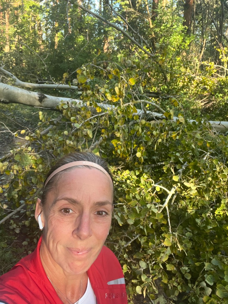 På feriens sidste dag fik jeg oktober måneds halvmarathon klaret – i smukt solskin tilbage i min egen skov, hvor de synlige tegn fra fredagens storm stadig lagde forhindringer ud på min vej.