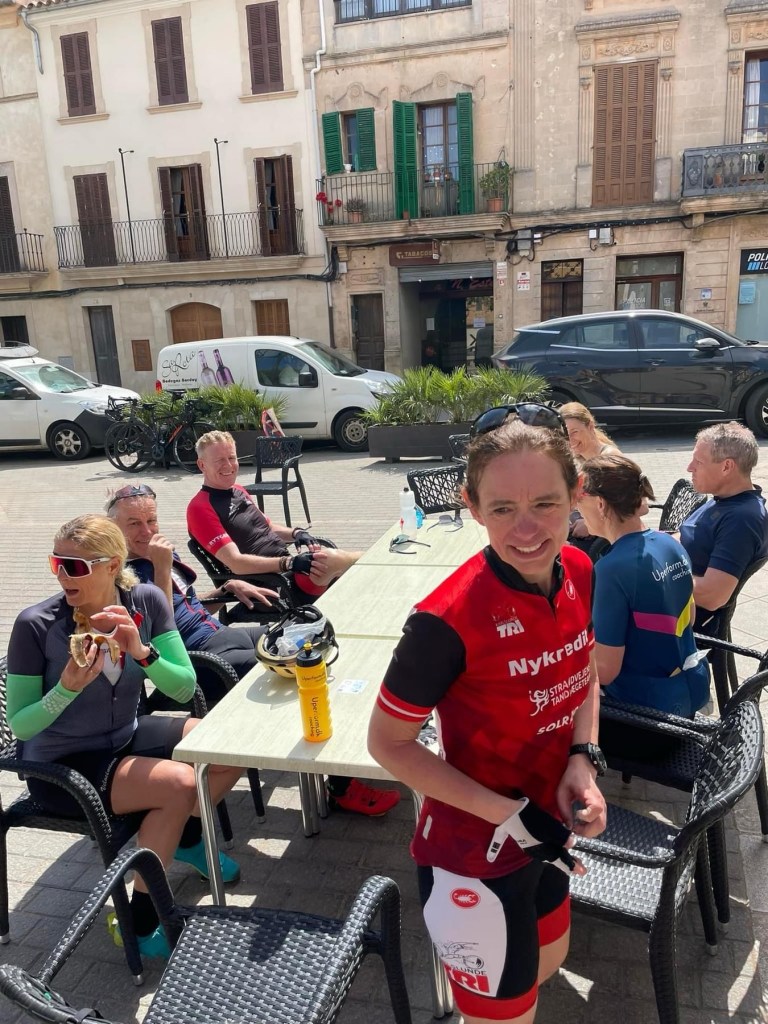 Også de næste dages program er ændret – jeg foreslog at vi byttede rundt på minitri fredag og Puig Major turen fredag fordi vi ikke cykler langt i ustadigt vejr, men godt kan lege triathlon i en byge… Det blev der taget godt imod.