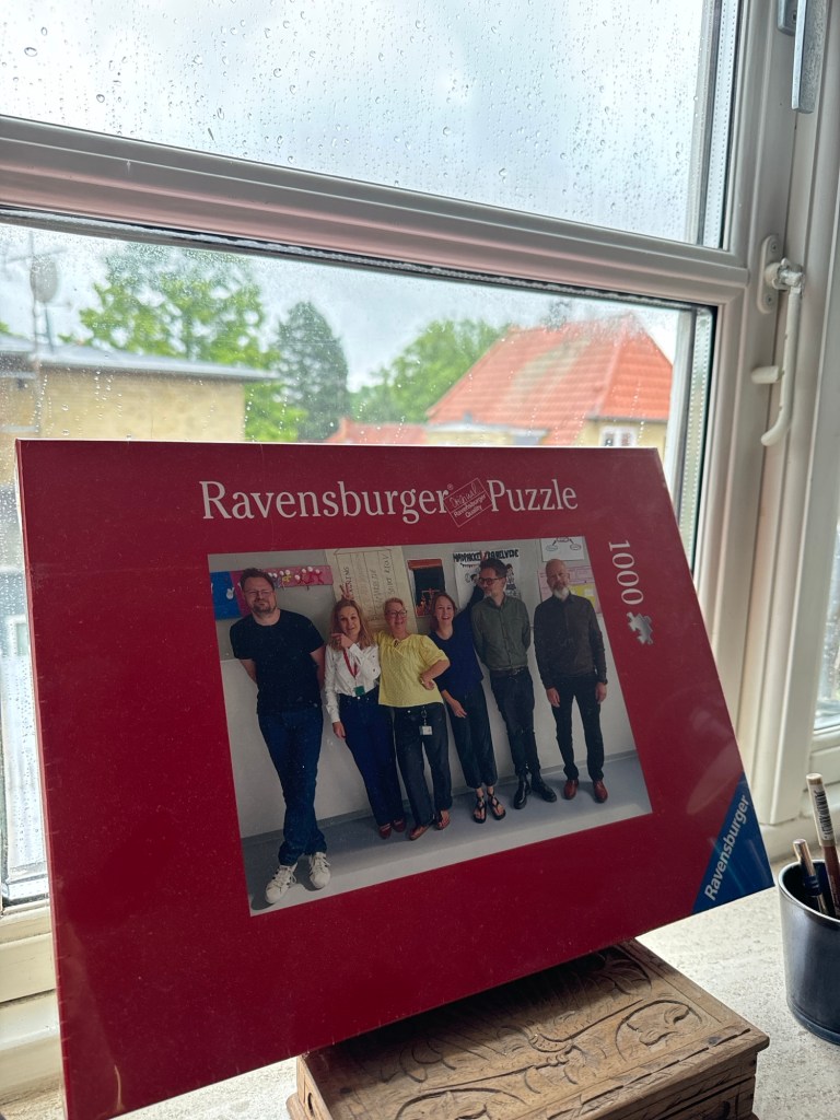 Så alt i alt starter ferien sløjt – hele vejen rundt. Til gengæld er strikkepindene rødglødende og jeg overvejer at påbegynde min gave med dette fremragende motiv fra min skønne tidligere ledergruppe 😂🤭 Vejret er jo ikke til andet.