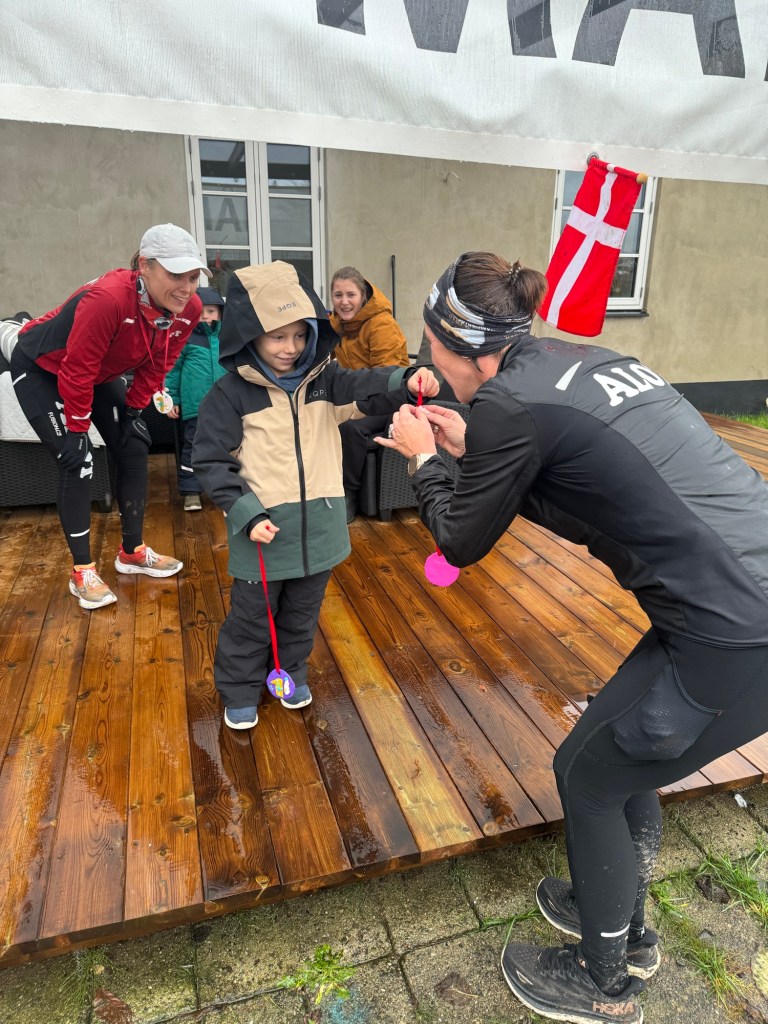 Tilbage på terrassen var der ægte målmand med medaljeoverrækkelse og banner og varm kaffe og 1/2 øl at styrke sig på efter at have skiftet til tørt tøj! Så er prologen til adventskalenderen i hus.