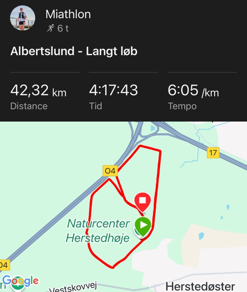 Ruten var ottetaller rundt om og bag Herstedhøje a 5.7 km dvs 7,5 omgange for Marathon – depot lige foran indgangen til naturcenteret. Der manglede ikke noget.