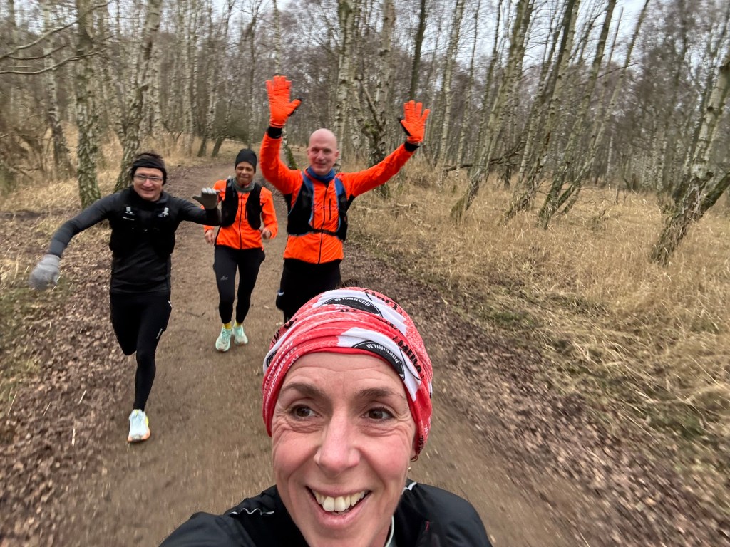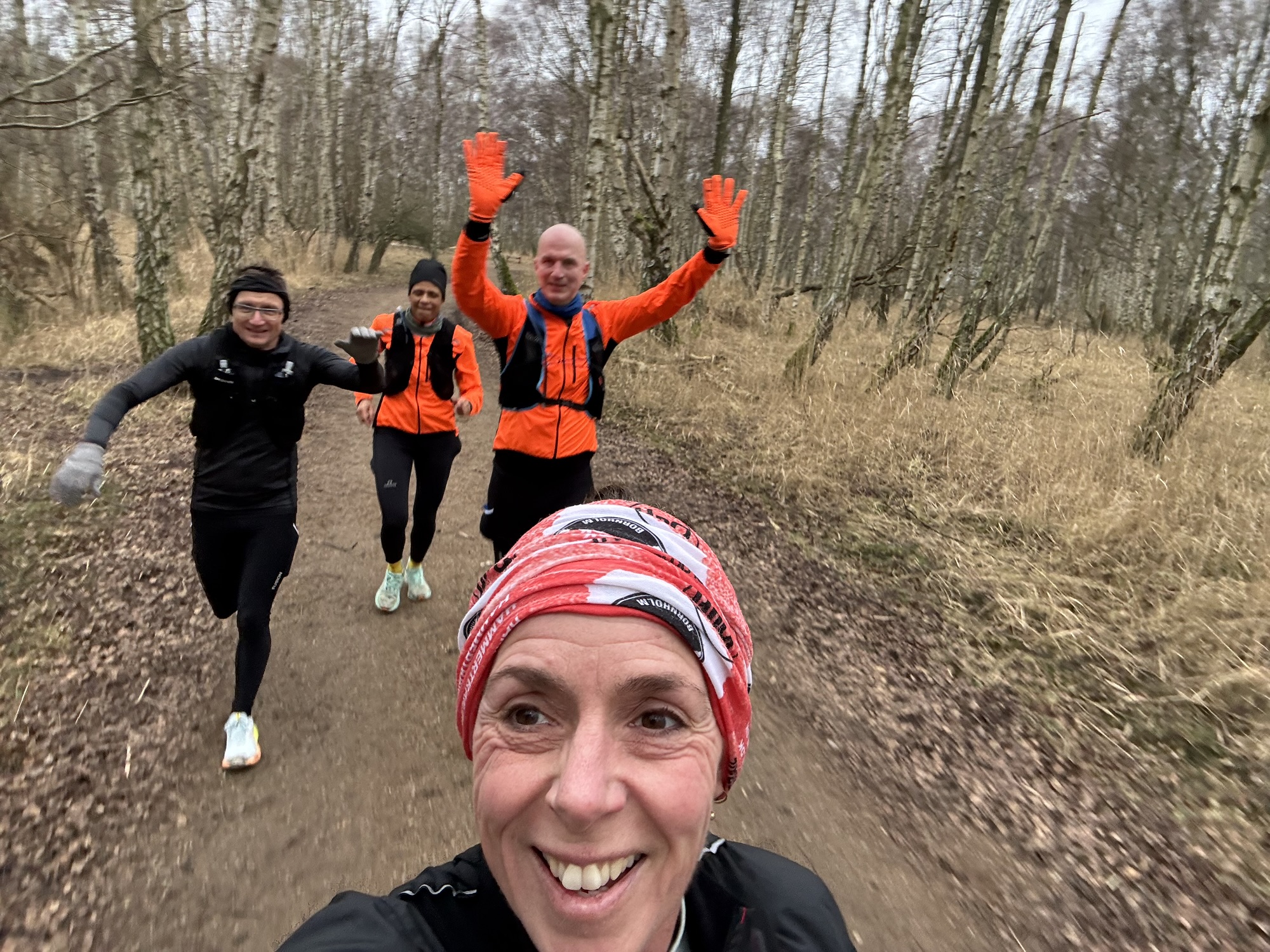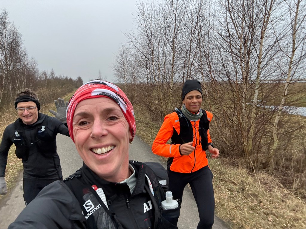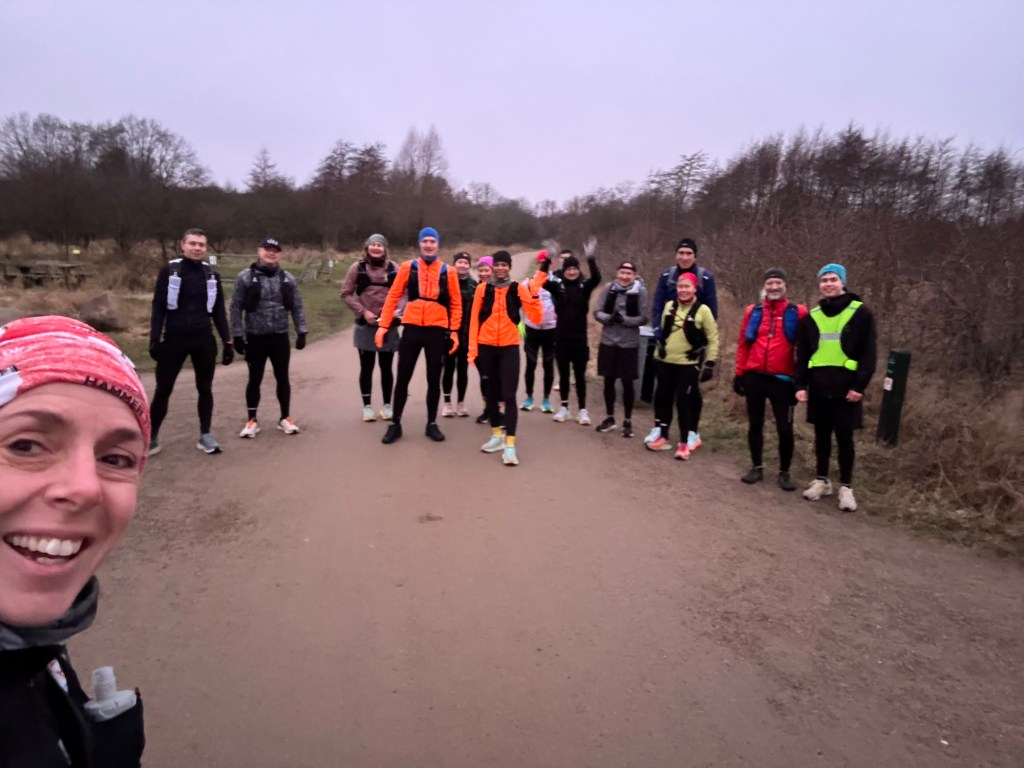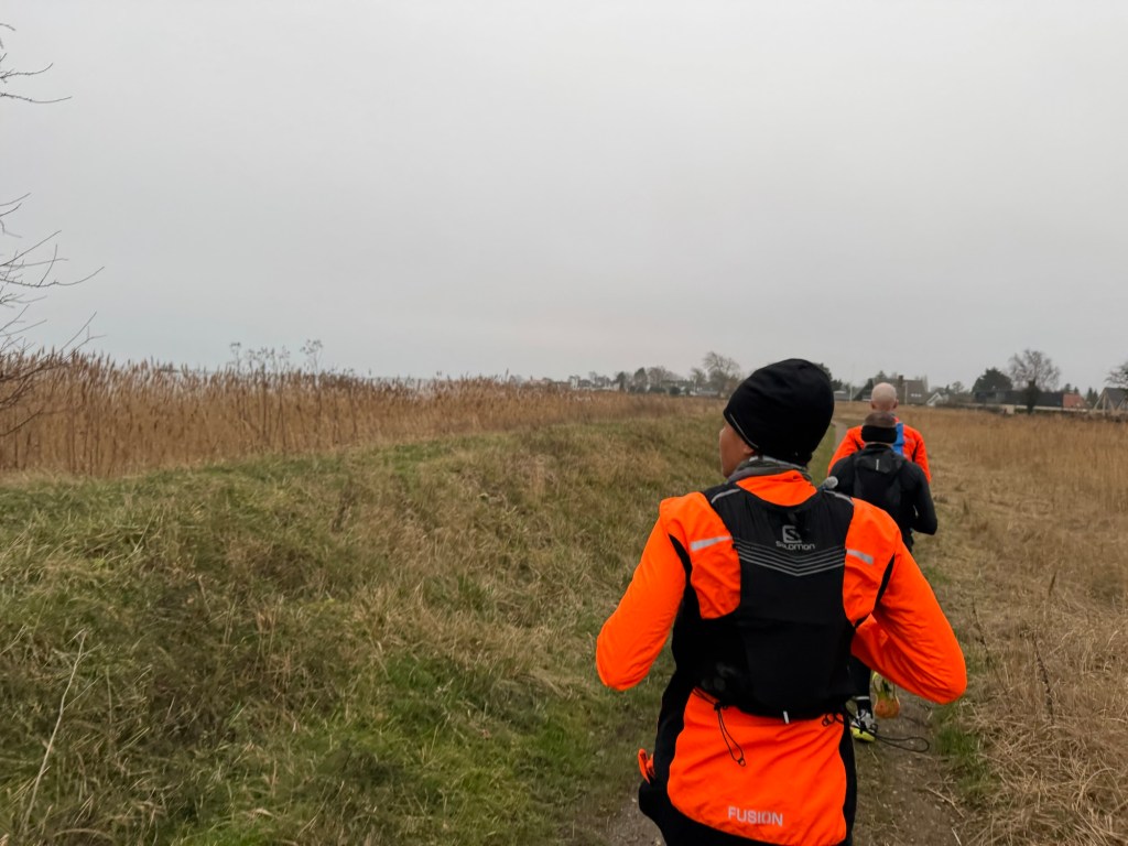Vi var ca. 20 løbere og vi løb længe en gruppe på ca 8. Så brød vi 4 lidt ud – herimellem var løbsarrangøren Thomas Lønbæk (LNBK) og Dennis som vi sludrede en del med de sidste 15-20 km. Han er tilmeldt dobbelt Ironman til sommer og vi talte om gamle røverhistorier og ambitioner i kombination med familieliv. Virkelig hyggeligt.