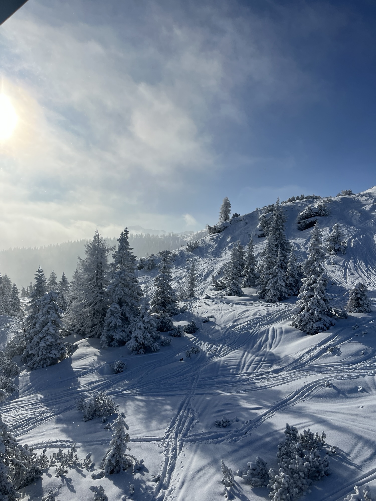 Flachau og Wagrainområdet viste sig fra sin bedste side i uge 7, da vi havde 8 dage på ski – bare os 4. Ingen vind, sol blandet med høje skyer, alle måltider udendørs på nær et par enkelte, 40 cm nysne sidst på ugen og bare spas og godt selskab.
