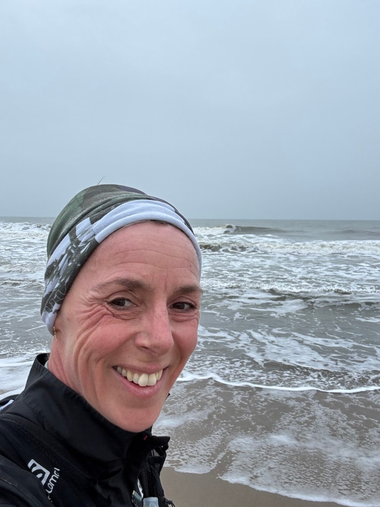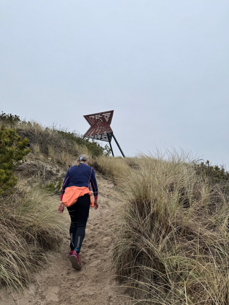 Efter ca. 18 km ramte vi stranden for første gang efter lange stræk i hedelandskab i National Park Thy. Sandet var så klistret og tungt og tog bare fat i mine fødder. Jeg følte, at jeg kun lige havde fået styr på min vejrtrækning, pulsen havde galopperet op og ned stort set siden start. Intet flow andet end nogle få km. Jeg døde der mellem 18-23 km, syntes det var helt urimeligt hårdt. Der var nok 25-30 løbere der overhalede mig lige der, jeg havde ellers været i overskud indtil da, så det var røv og nøgler.