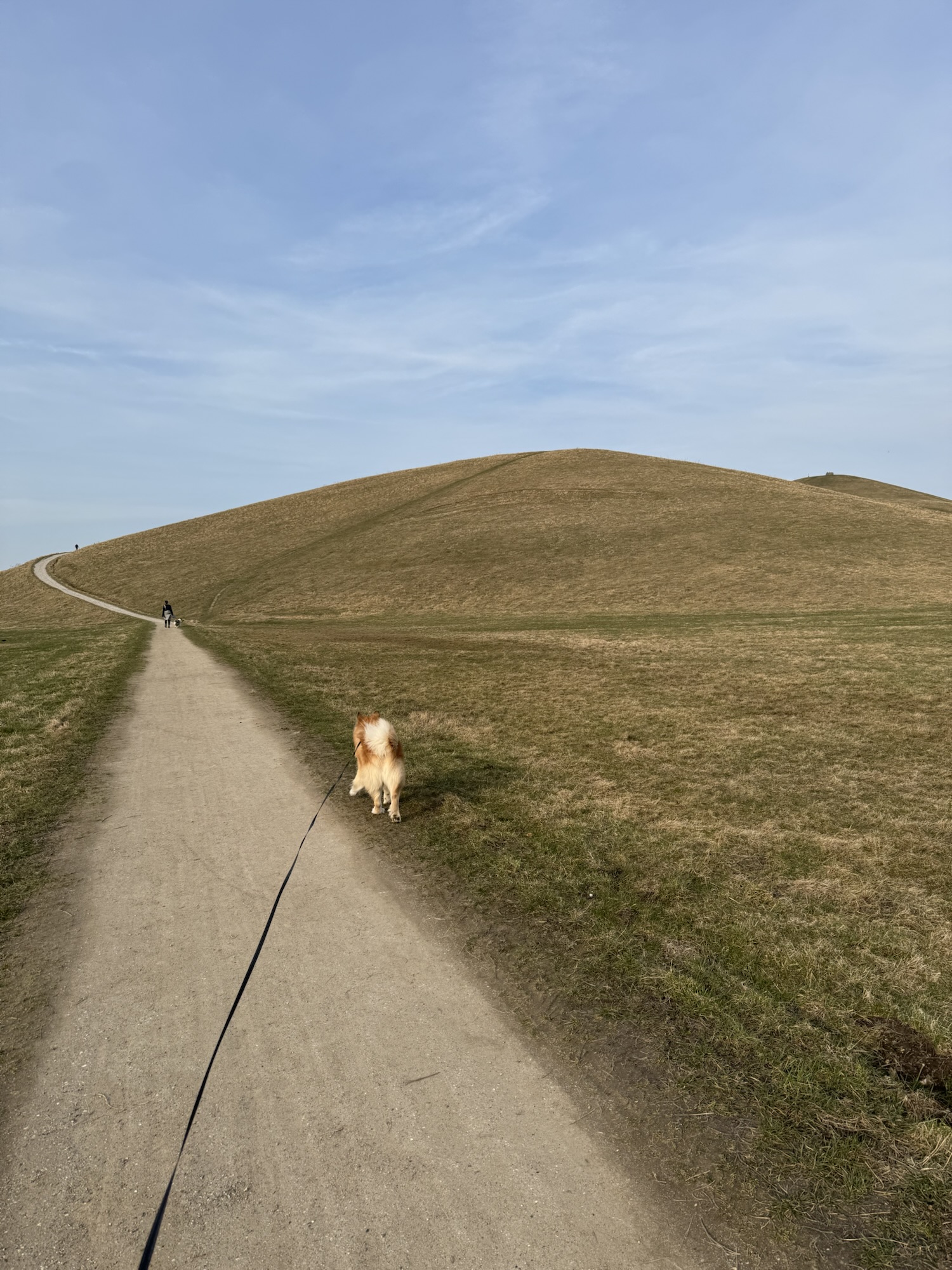 Vi gik ned af bjerget og nød solens stråler og at det var gået godt. Vi kørte hurtigt hjem og fik bad og mad i en fart og så mødtes Mandy og jeg igen 14.30 for at pakke depotet sammen og få de sidste marathonløbere i mål og få deres tider registreret. Jeg havde Balder med til eftermiddagstur. Mark er rejst på skiferie med herrerne i går, så jeg kunne ikke blive aflastet på den konto og det er helt ok, det er meget rart at bevæge sig lige efter langt løb. Så jeg var oppe på bjerget én gang til – nu med hund. Og forbi Amalie til en kop kaffe, før jeg måtte hjem og opdatere tiderne, SoMe mm.