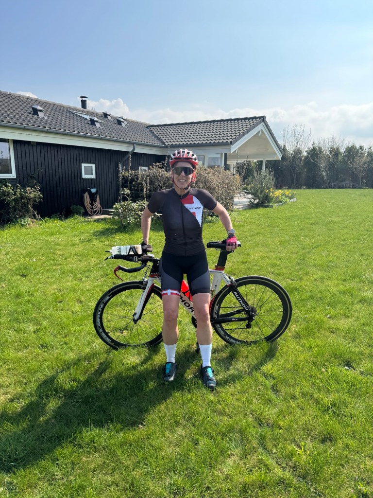 Jeg besluttede at tage cyklen de knap 80 km og vejret var intet mindre end genialt – knap 20 grader, korte ærmer og bare ben midt i april. P3 i ørerne og svag sidevind fra syd . 2 timer og 35 minutter senere ankom jeg og Mark havde overhalet mig på landevejen og var ca 20 min foran mig. Jeg elsker at jeg kan. At min krop kan. Cykelsættet er stadig et favoritsæt fra triathlonshop og Orca og det spiller bare stadig.