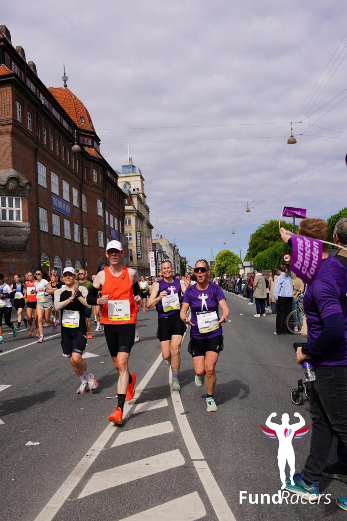 Vi fulgtes ad alle 3 i et stabilt pace ca 5.30 indtil lige før 30 km. Så begyndte Nanna at få vanskeligheder. Tidligere havde vi passeret Børnecancerfonden for enden af Gothersgade og der var virkelig god stemning.