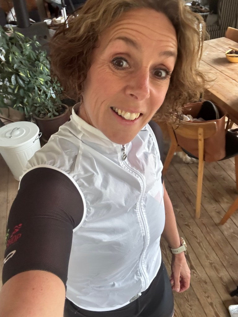 Mellanie har købt en fed cykelvest “til os” på cykelmesse for en måneds tid siden hvor hun fik et godt tilbud. Den spiller max under rygsækken med mit skiftetøj.