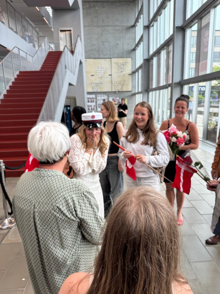 Det er kun 14 dage siden, at Carla fik sin fine røde hue på. I aftes sad Mark og jeg og genså billederne og kneb en lille tåre over al den glæde, der er i billederne fra Frb Gymnasium, fra samme eftermiddag hvor familien tog med hjem i haven og hvor Carla og Mark ovenikøbet overraskede os med sammen at synge “Butterfly fly away” rundt om spisebordet… Så rørende og så fint.