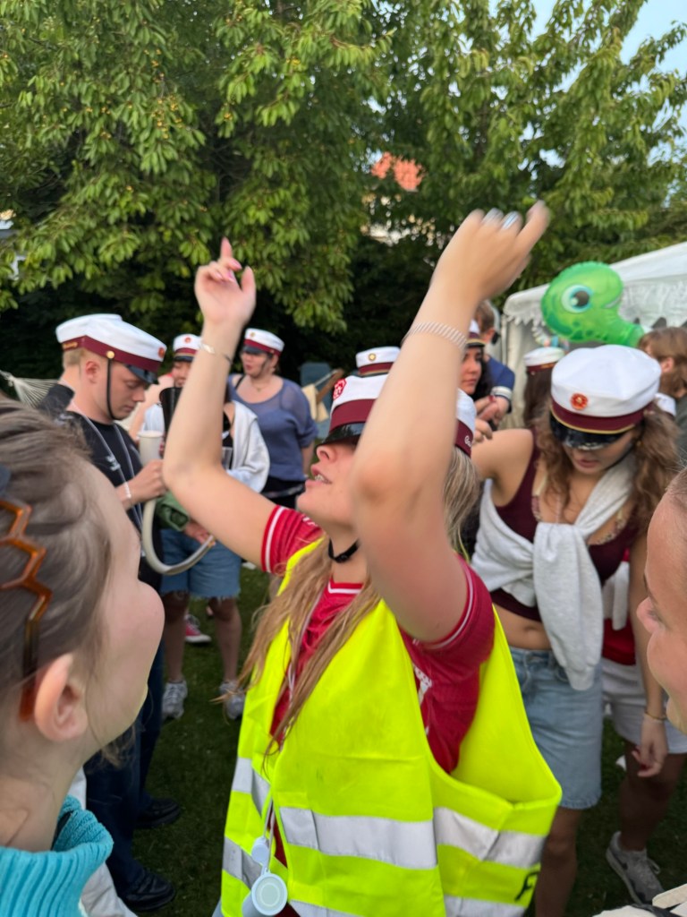 Vi har afviklet tre fester på ni dage: foruden hue-mandagen, var der translokation efterfulgt af vognstoppet fredag og det store gilde i haven med 70 gæster mandag 30.6.
