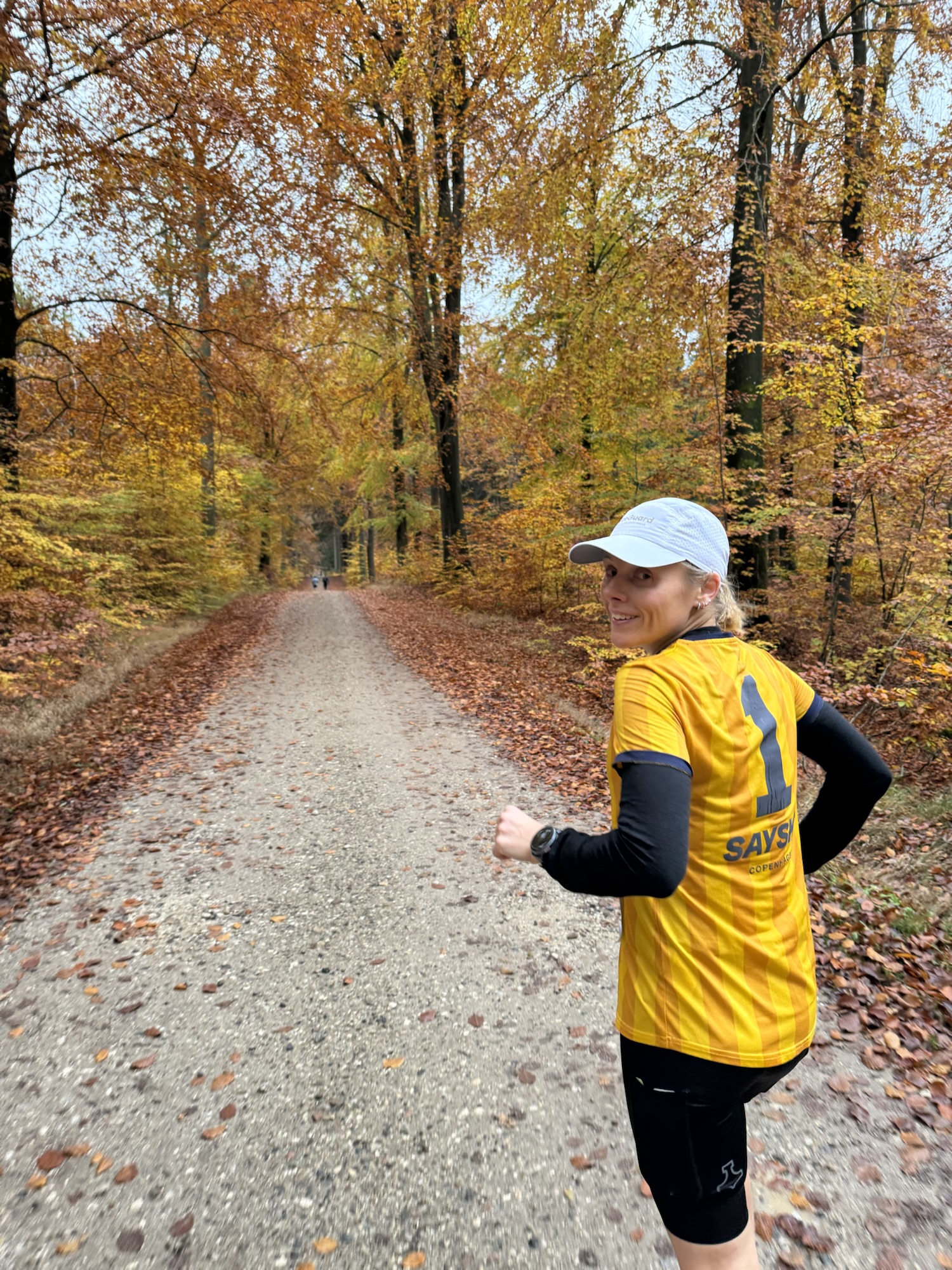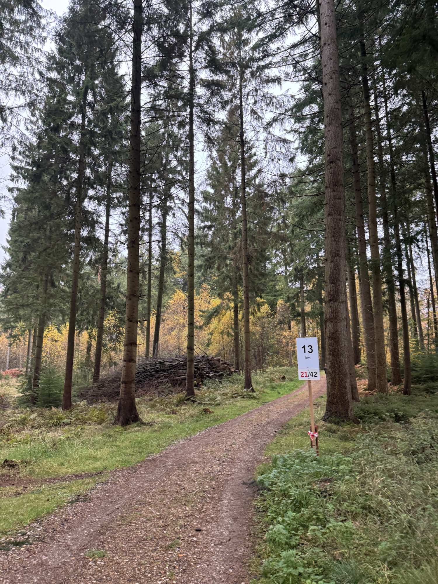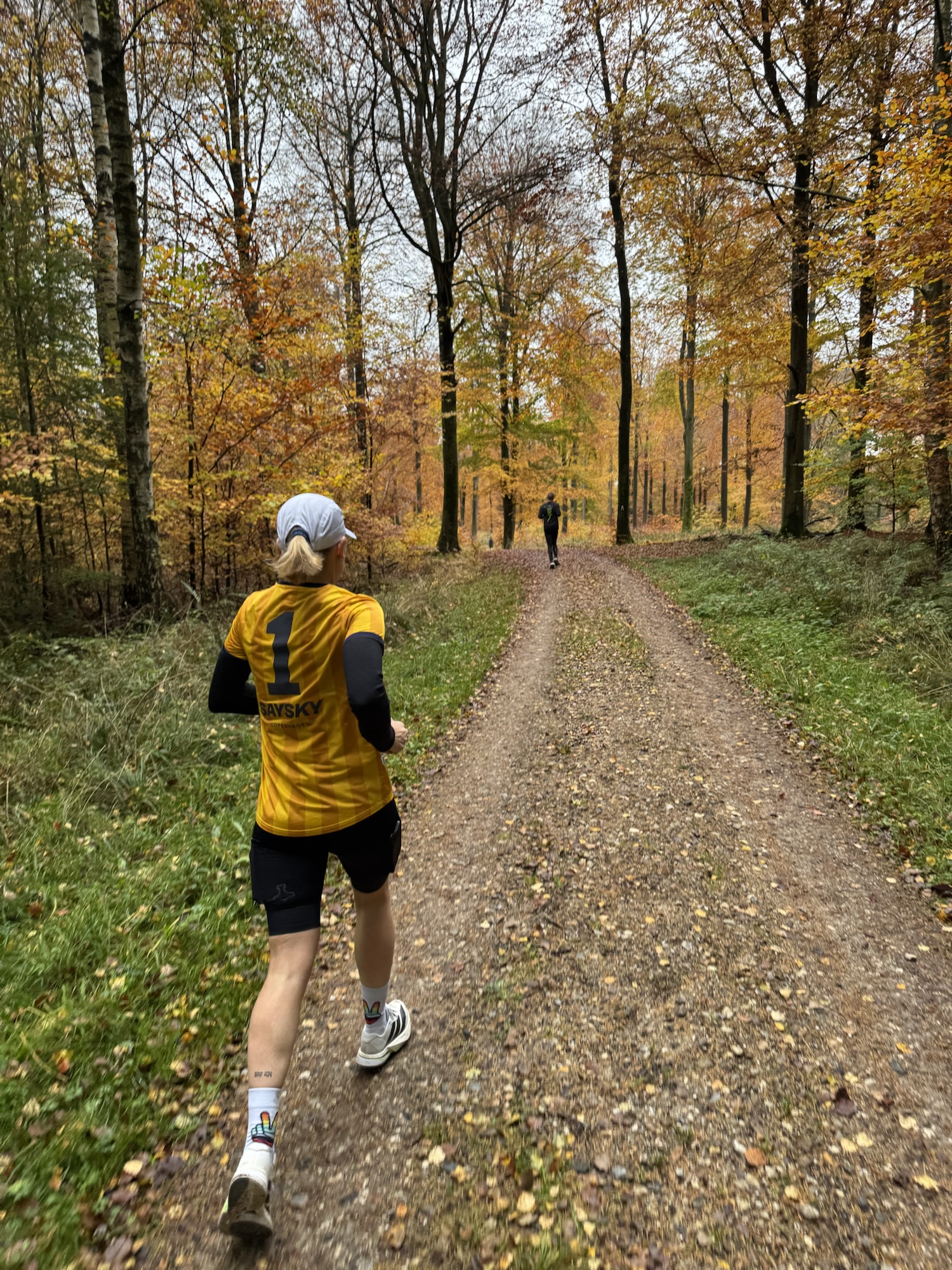 Vi var ca 140 løbere på marathon og starten gik kl. 10. Skoven var simpelthen så smuk. Mosset var nærmest neongrønt og så silkeblødt ud. Søerne lå blikstille med andemad og blade på som drys på en softice. Bladene i alle deres nuancer dalede stille ned fra trætoppene i det vindsstille vejr. Ikke et øje tørt.