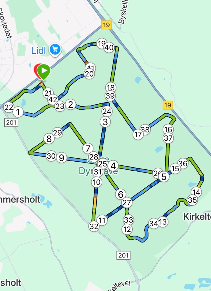 Allerede ved 8-9 km kunne jeg mærke, det ville blive en lang tur. Jeg sled i det, havde tunge ben og ingen energi. Hoftebøjerne knirkede, men jeg havde ingen smerter i knæet og ingen svigt hvor benene forsvinder under mig – det er meget positivt efter jeg var på Bisbebjerg i mandags til tjek efter jeg nu i mere en to måneder har haft hævelse og svigt. Fyssen har gjort alverden og det går bedre. De gennem scannede mit knæ og der er en del væske og bruskskader som de gerne vil MR scanne for at blive klogere på. Det skal jeg d. 24.11.