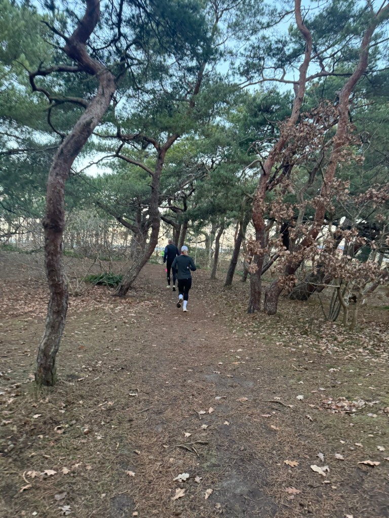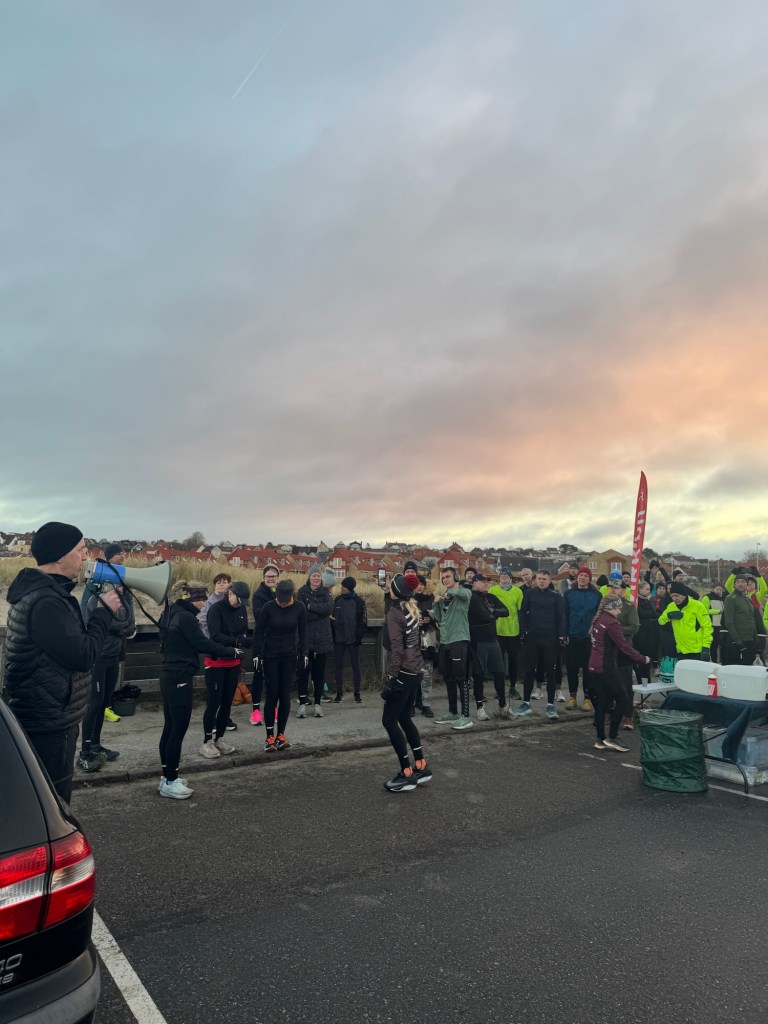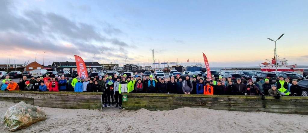 Vækkeruret ringede midt om natten – sådan føles det når julekroppen er vænnet til at vågne kl 9 og det så ringer til normal tid 6.20. Jeg skulle køre langt – for at løbe langt – helt til Hundested, 100 km og ca 1,5 time hver vej. I dag var vi endelig fuldtallige igen – både Mandy og Jeanne. Mandy havde endda hele sin flok med – pigerne og Jakob som skulle løbe halvmarathon.